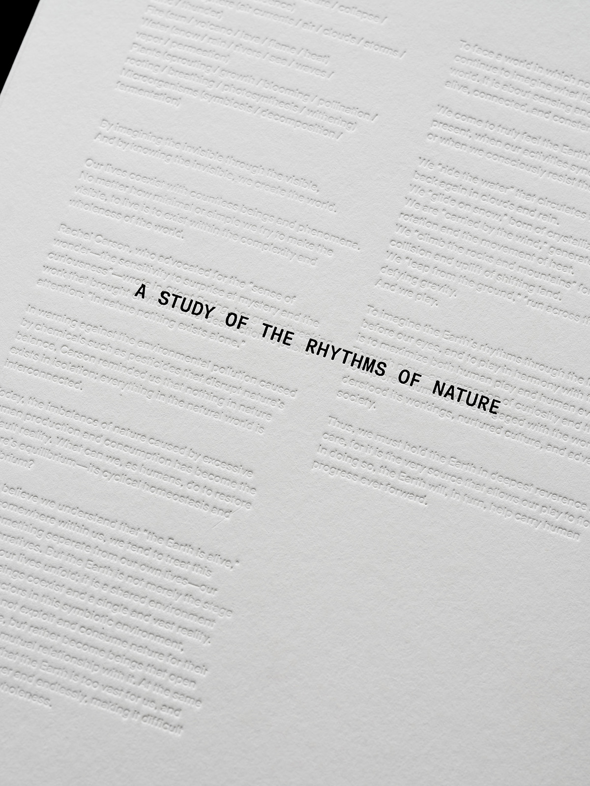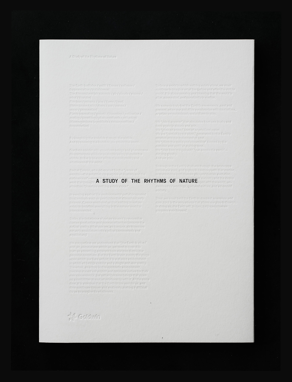 書籍を購入した来場者には、パーパスビジュアライズブック『A STUDY OF THE RHYTHMS OF NATURE』が特典として配布される。同書は"地球の運動"をテーマに、自然の循環を可視化する観察記録として制作されたもの。美しい自然写真や、自然と関係性を広げる活動を行うクリエイターへのインタビューが収められている。